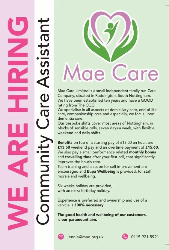 Due to increased demand for our care we are looking for more community care assistants!!!